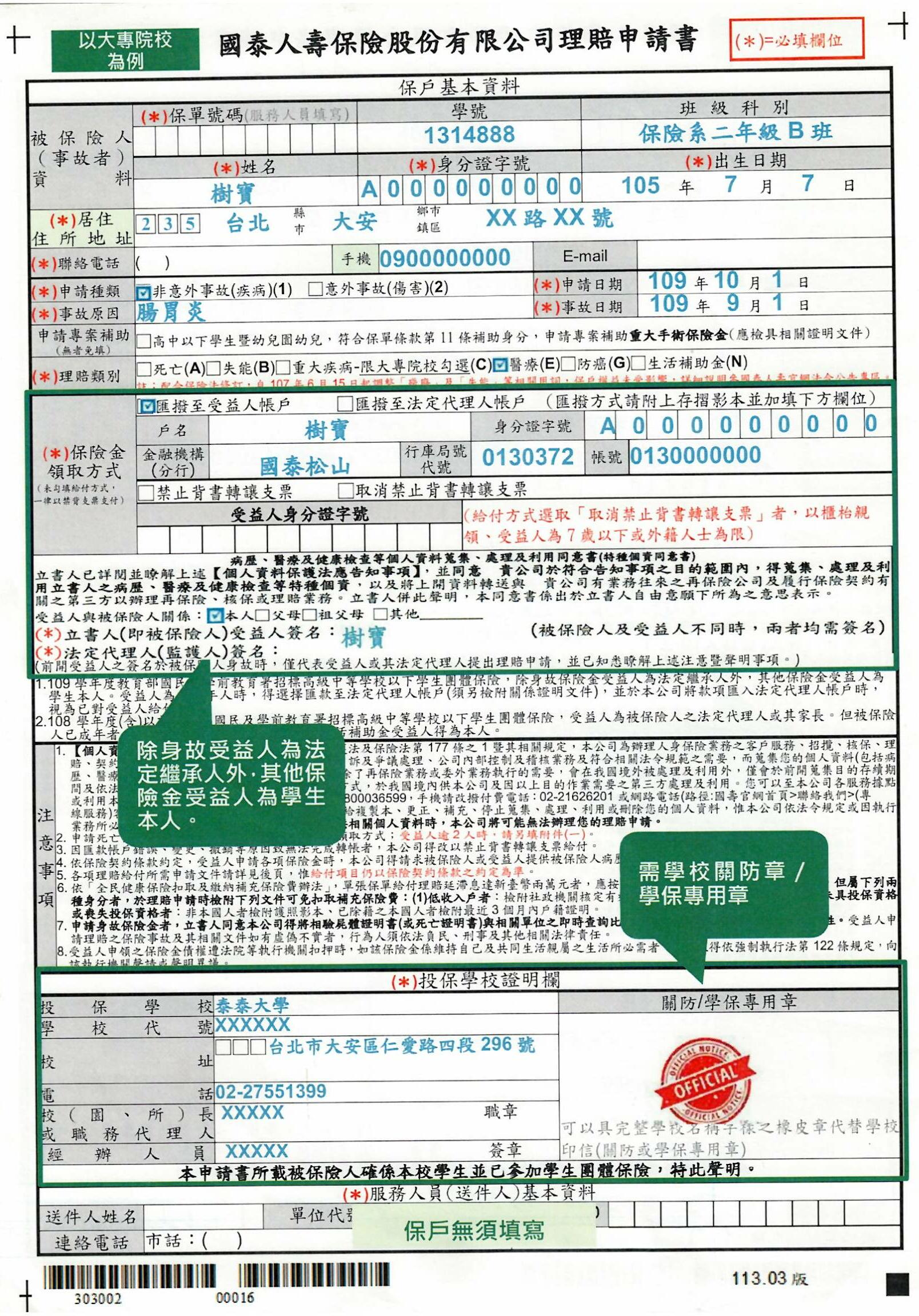 健康中心 / 學生團體保險 / 理賠申請書範本